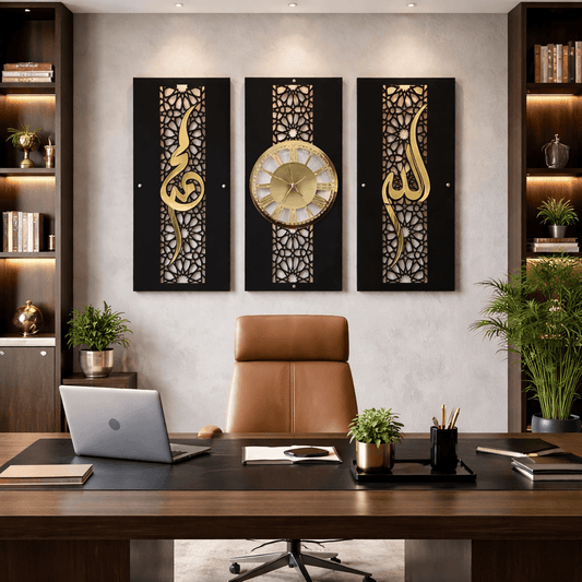 Noor-e-Zaman Premium Wall Clock Set- 3 Panel Wall decor Set