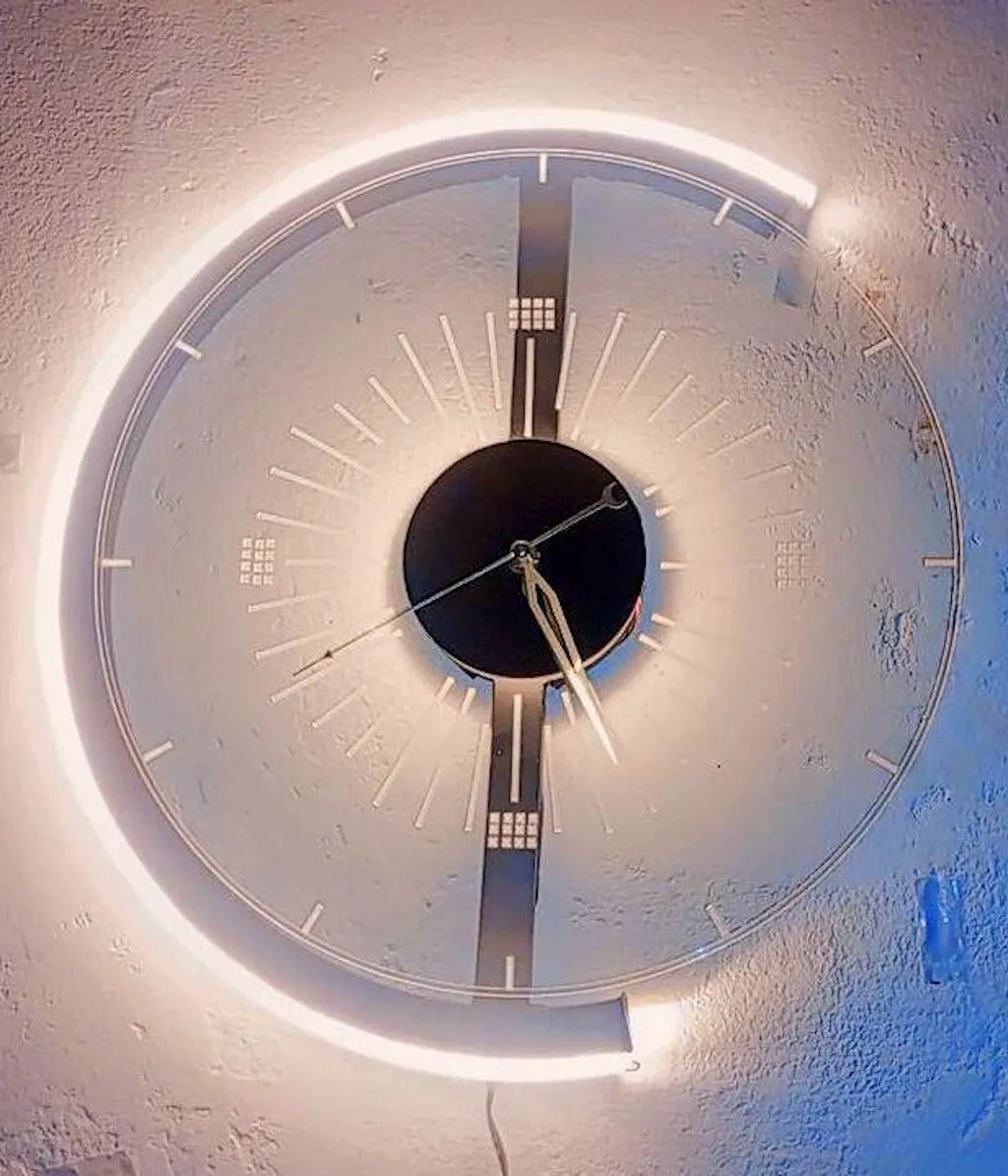 Crafted with precision, this Wall Clock showcases a unique design with vibrant neon lighting, adding a contemporary edge to your decor. It's not just a timepiece; it's a captivating work of art on your wall.