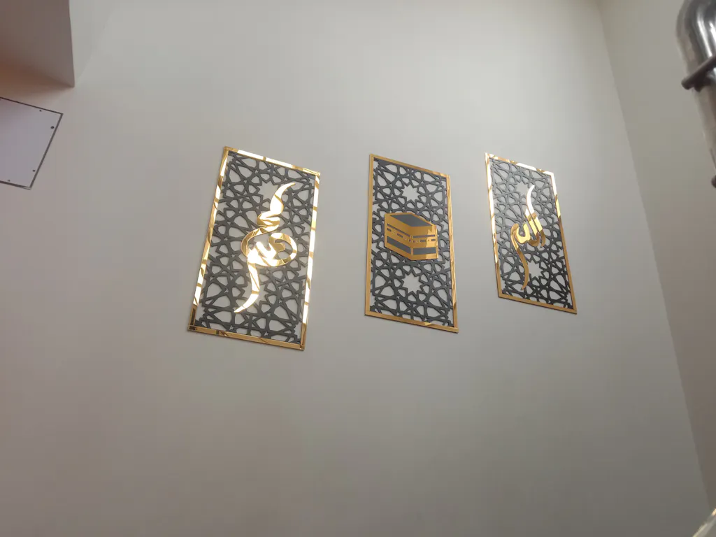 Imagine this elegant set of three Islamic frames displayed in your prayer area or office, offering a serene and spiritual atmosphere. The timeless design makes it a perfect focal point, inspiring reflection and devotion daily.